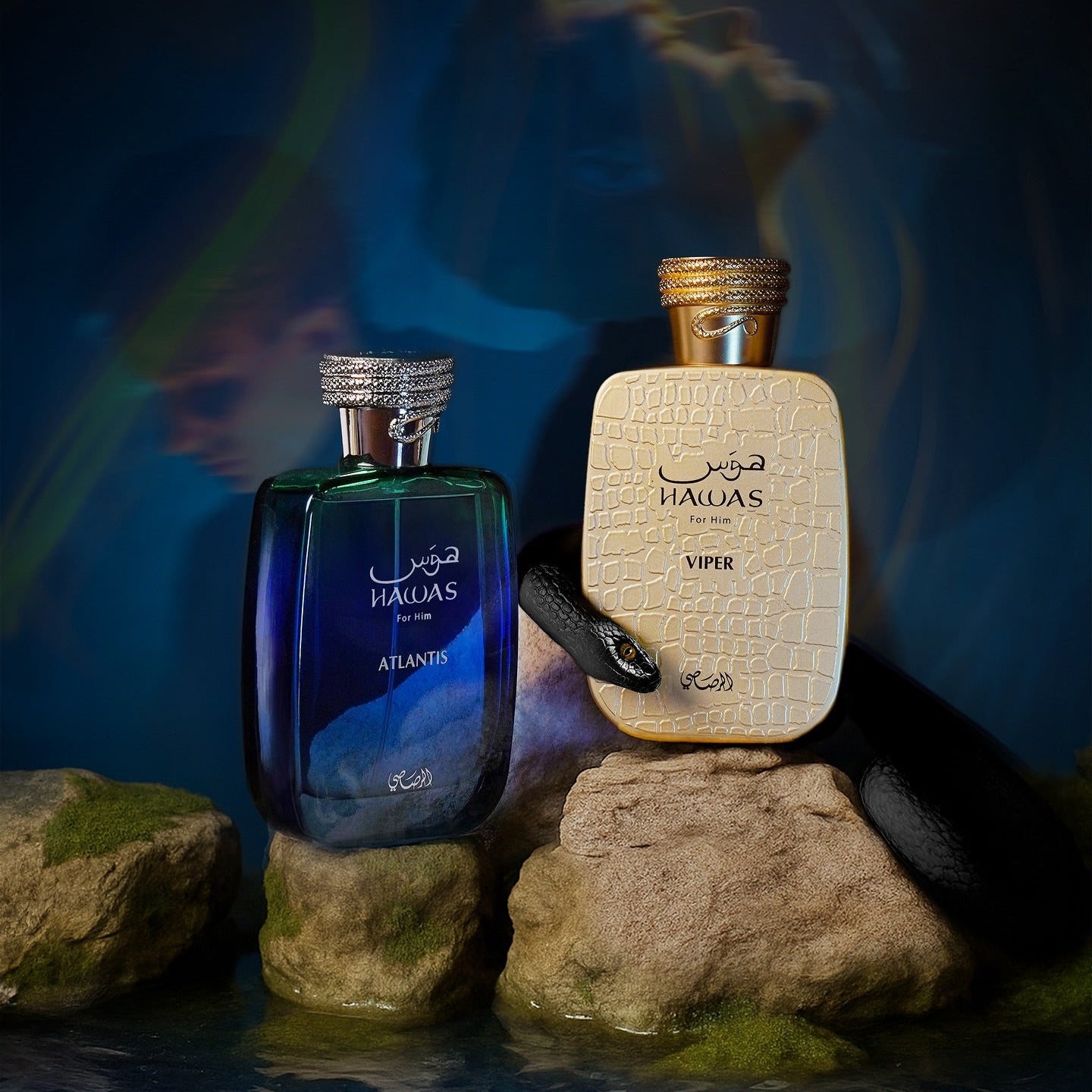 A deeper evolution of Hawas Ice, inspired by the mythical submerged city of Atlantis. The scent evokes the serenity and mystery of an underwater world where green moss clings to ancient ruins and sunrays pierce the deep blue sea.